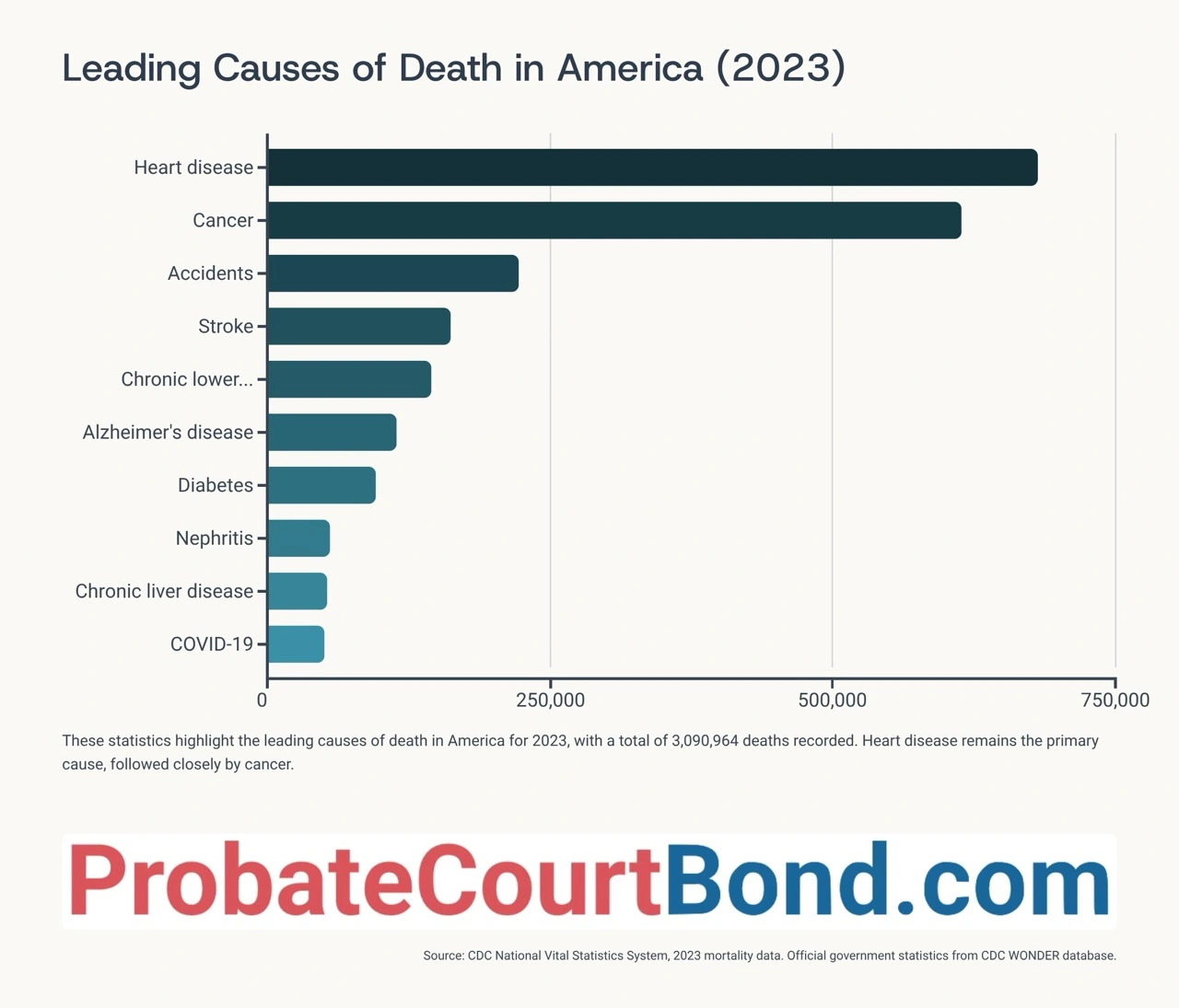 This 2025 data report from ProbateCourtBond.com pulls together fresh stats from sources like the CDC, NFDA, Trust & Will, and more. We are sharing these visuals to highlight trends in estate planning, probate processes, and end-of-life costs. Each image below can be quoted or shared with credit for educational use. Our goal is to help people understand the value of tools like guardianship bonds, administrator bonds, and personal representative bonds in smoothing out these challenges.