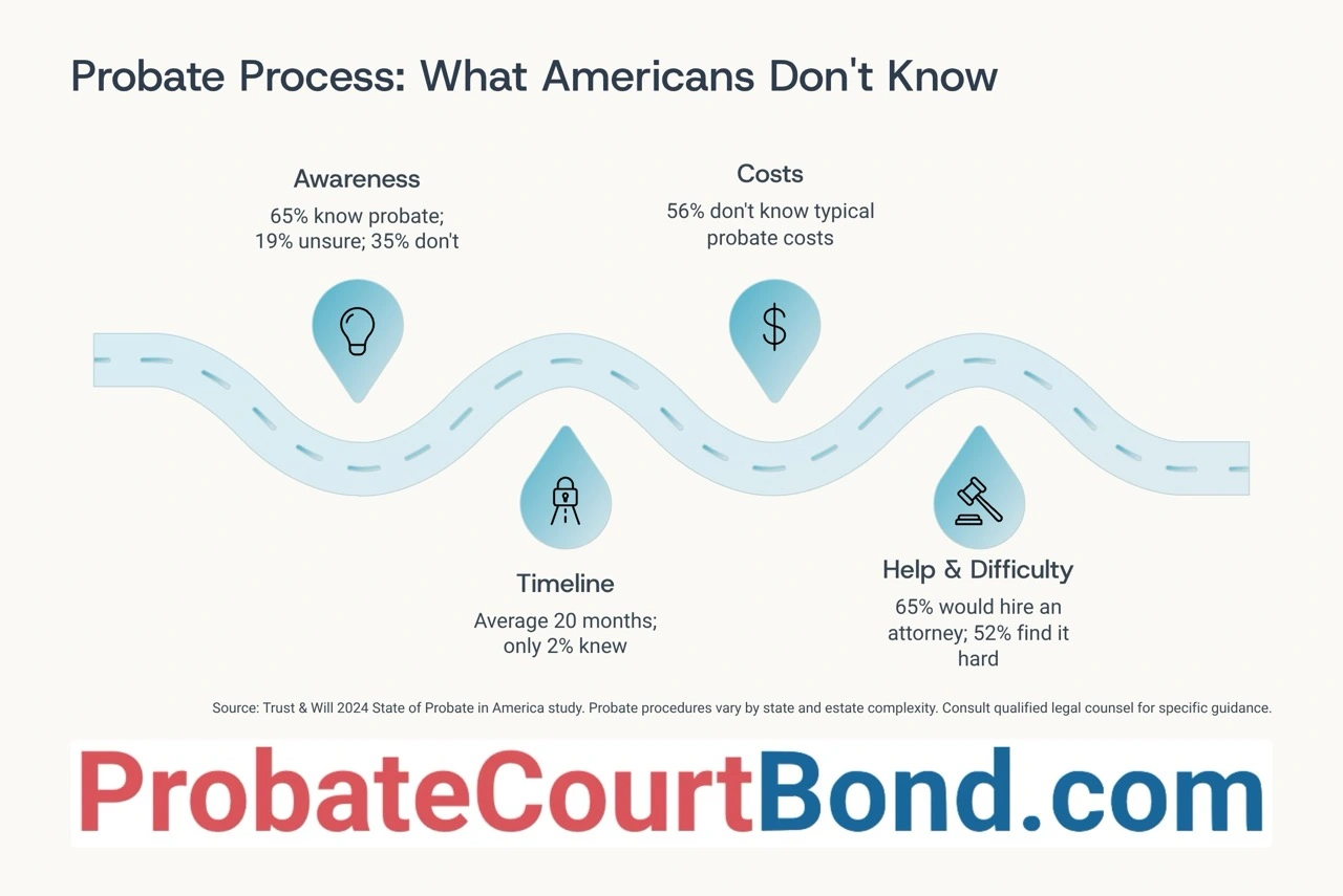 Many people are in the dark about probate basics. About 65 percent know what probate is, but over half have no idea about the costs or timelines involved.